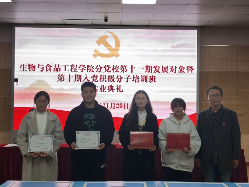 11月20日,生物与食品工程学院分党校在学院虚拟仿真中心举办第十一期发展对象暨第十期入党积极分子培训班结业典礼。本期培训班全体学员参加结业典礼,学院党委副书记王彦青、学院团委负责人、辅导员代表出席典礼,典礼由培训班班主任王玲玲主持。