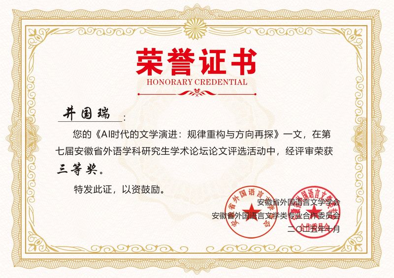 井国瑞的论文题为:《AI 时代的文学演进:规律重构与方向再探》,对人工智能技术赋能文学创作的现状进行了分析,研究了文学演进是否存在普遍性的规律问题。同时,从“文学进步论”的角度,分析了文学发展的非时序性、主题的永恒性及形式的共生性。进而,从数字技术创新的语境出发,探讨了数智焕新给传统创作带来的赋能效应,以及算法写作给词体审美范式转型带来的冲击;最后,阐明了人的主体性在创作实践中的不可替代这一观点,表明了对人机互融共生形成的新的文学范式的积极态度以及在数字时代文学性如何重归人本位的思考。