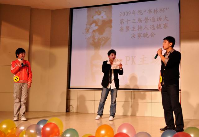 由校党委宣传部主办的第十三届“书林杯”普通话大赛暨主持人选拔赛决赛于122日晚七时在学术报告厅隆重举行。校党委委员、宣传部部长苏国红,有关职能部门和各系负责同志莅临现场观看了晚会。