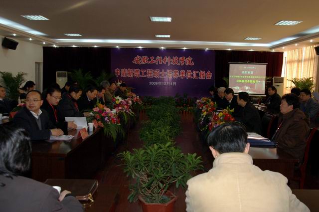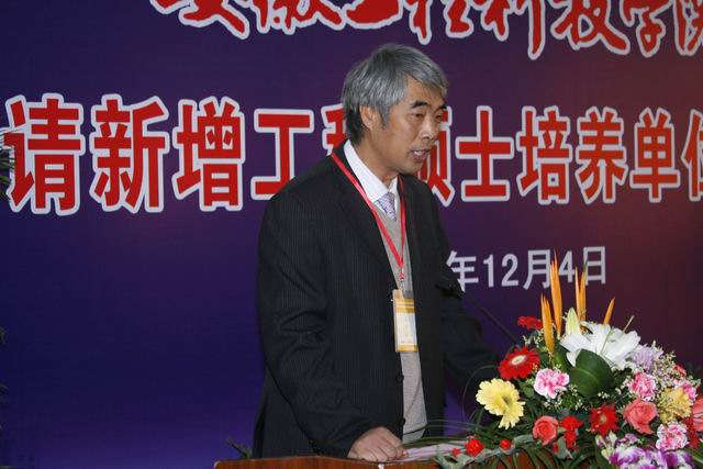 省委教育工委书记、省教育厅厅长程艺在会上作了重要讲话。他首先代表省委教育工委、省教育厅对各位专家的到来表示热烈的欢迎,对各位长期以来对安徽省教育事业的关心支持表示衷心的感谢。他在介绍安徽省情和安徽教育概况后指出,安徽省当前要进一步加大高等教育类型结构的调整力度,完善高等教育体系,而大力发展包括工程硕士在内的专业学位研究生教育既是我省经济社会发展的现实需要,又是调整优化高等教育结构的内在要求。安徽工程科技学院近年来发展迅速,成绩有目共睹,特别是在培养应用型创新人才,服务地方经济建设方面做出了重要贡献。他还说,安徽工程科技学院作为工程硕士培养单位将对推动安徽经济建设和社会发展,加快“皖江城市带承接产业转移示范区”建设和“合芜蚌自主创新综合配套改革试验区”建设都有着十分重要的意义。最后他表示对于此次考察评审寄予期望,并恳请各位专家能给予更多的支持,提出更多的宝贵意见和建议。