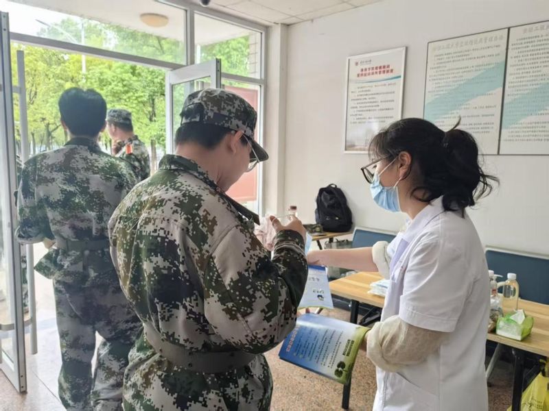 开展医疗服务,保障军训新生健康安全。根据往年工作经验,校医院提前准备好充足的应急药品和物资,9月9日至9月26日军训期间,每天安排2-4名医护人员在军训现场值守,第一时间处理同学们出现的各种不适症状,确保同学们健康安全。